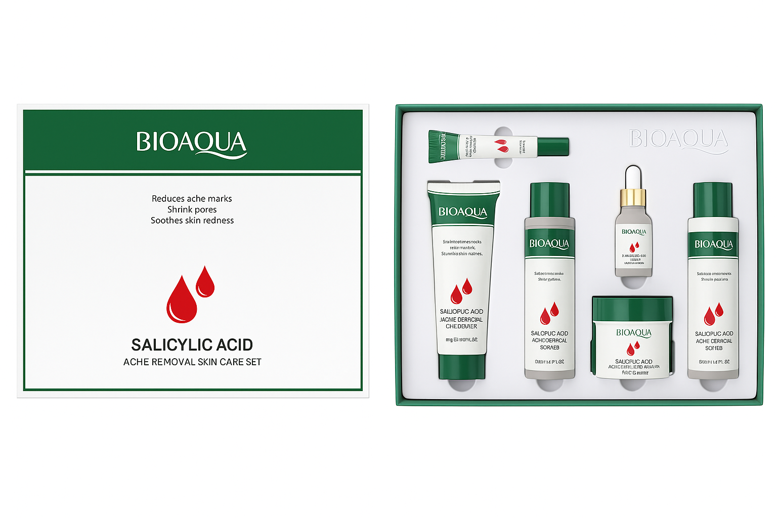 El BIOAQUA Salicylic Acid Acne Removal Skin Care Set es un sistema completo de cuidado facial especialmente formulado para pieles con tendencia acneica. Gracias a la acción del Ácido Salicílico, ayuda a reducir marcas de acné, minimizar el tamaño de los poros y calmar el enrojecimiento, promoviendo una piel más limpia, suave y saludable.