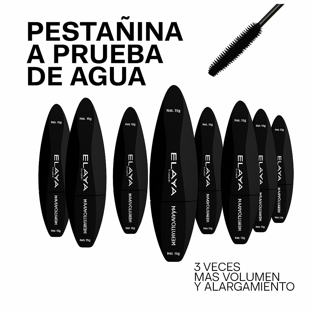 La Pestañina Máximo Volumen a Prueba de Agua de ELAYA Belleza proporciona hasta 3 veces más volumen y extensión en cada pasada.