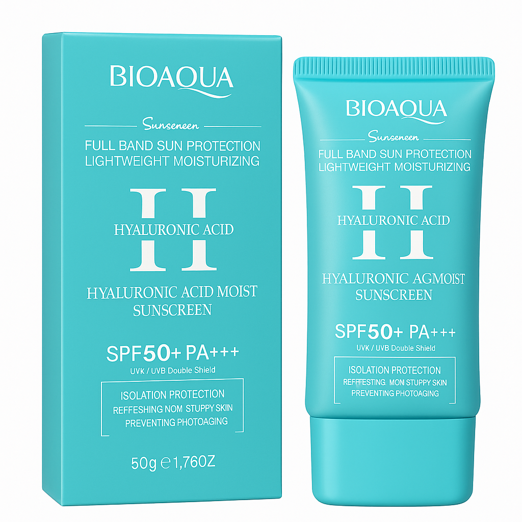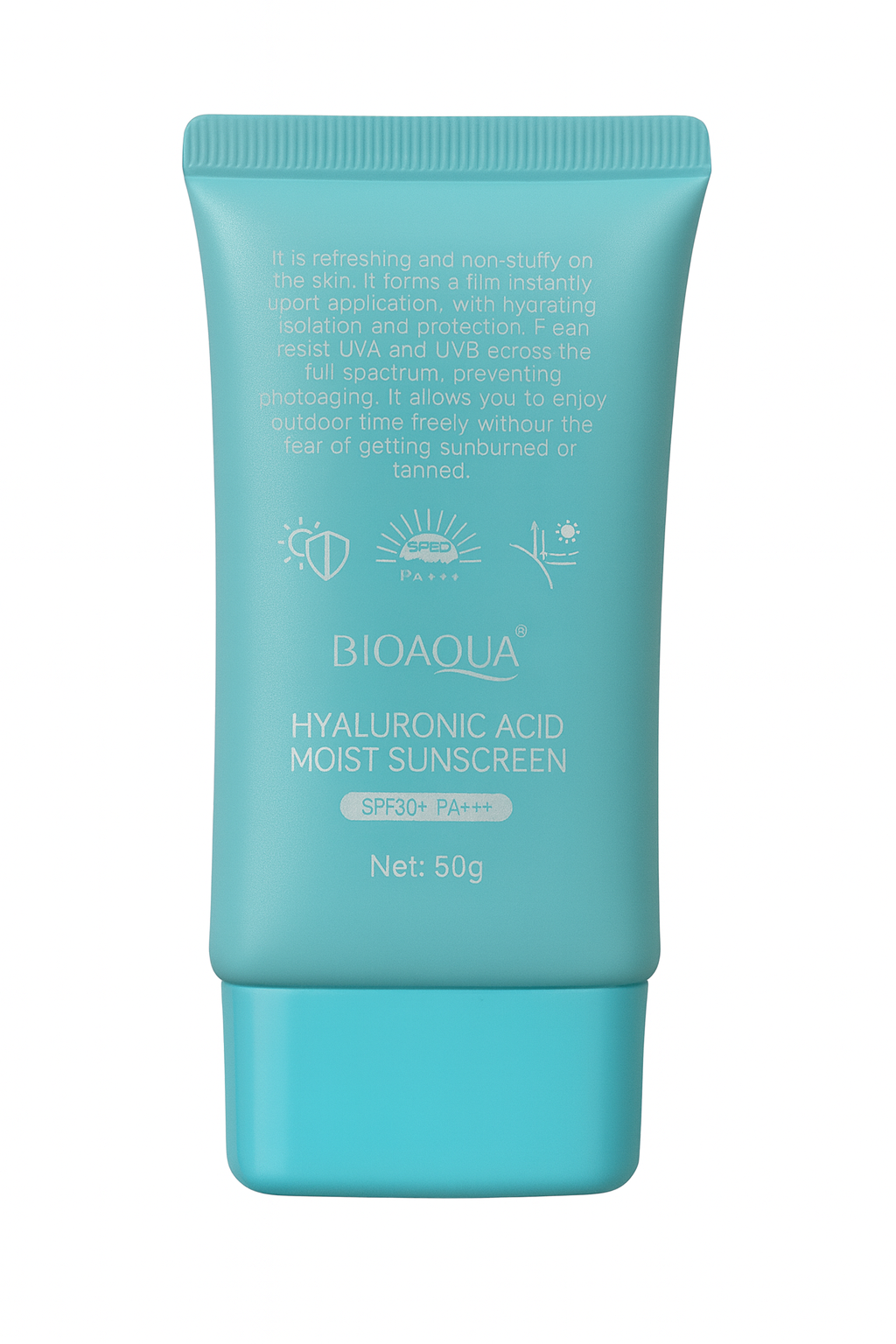 El Protector Solar Hidratante con Ácido Hialurónico BIOAQUA SPF50+ PA+++ ofrece una protección solar de amplio espectro contra los rayos UVA y UVB, ayudando a prevenir el fotoenvejecimiento y el daño causado por el sol. Su fórmula ligera y refrescante crea una película protectora inmediata al aplicarse, sin sensación pegajosa ni obstrucción de la piel, lo que permite disfrutar de actividades al aire libre sin temor a quemaduras solares o bronceado no deseado.