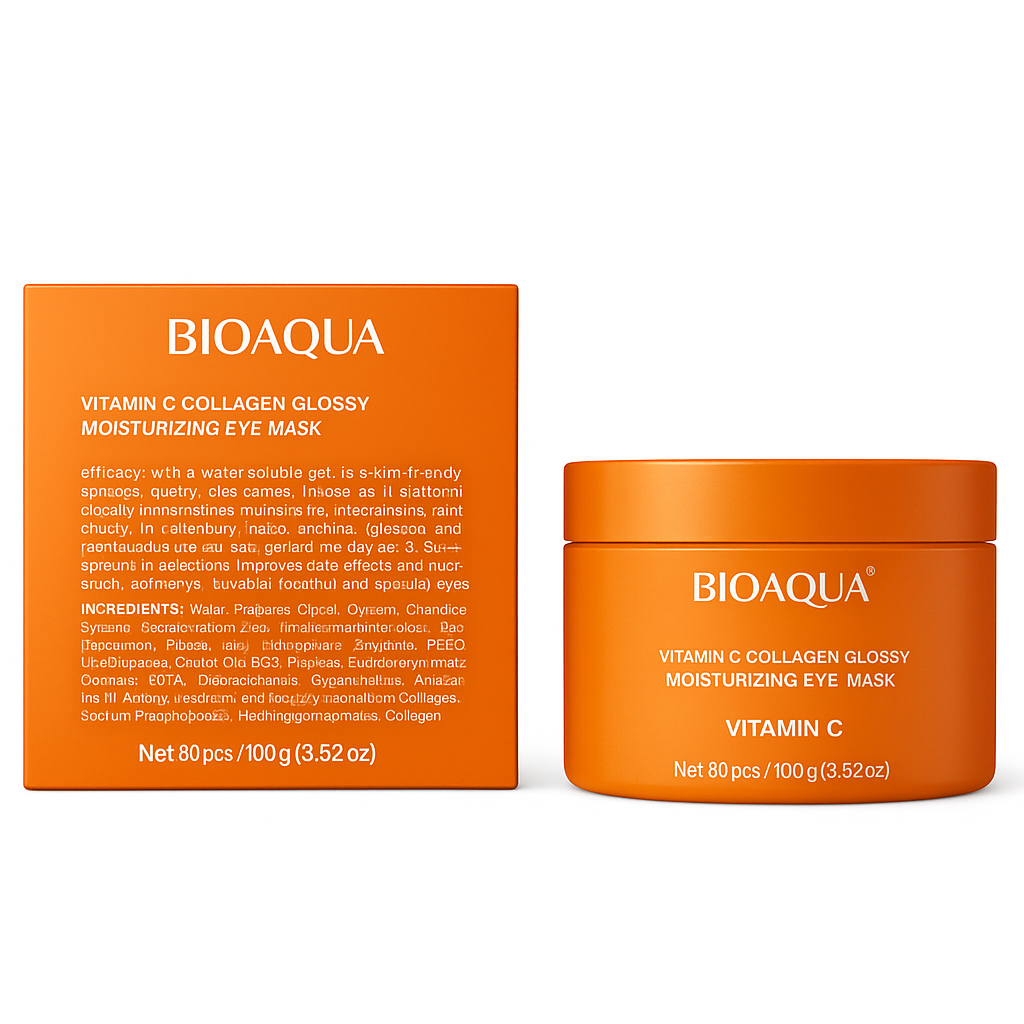 BIOAQUA Vitamin C Collagen Glossy Moisturizing Eye Mask son parches avanzados para el contorno de ojos, formulados para hidratar profundamente, iluminar y mejorar la elasticidad de la piel delicada alrededor de los ojos. Su combinación de Vitamina C antioxidante y colágeno ayuda a suavizar líneas finas, revitalizar la mirada y aportar un aspecto descansado y luminoso.