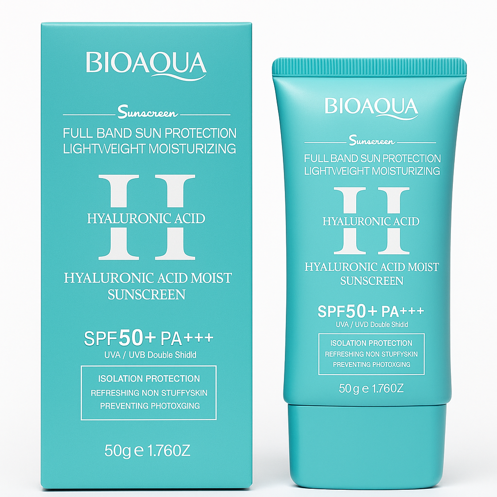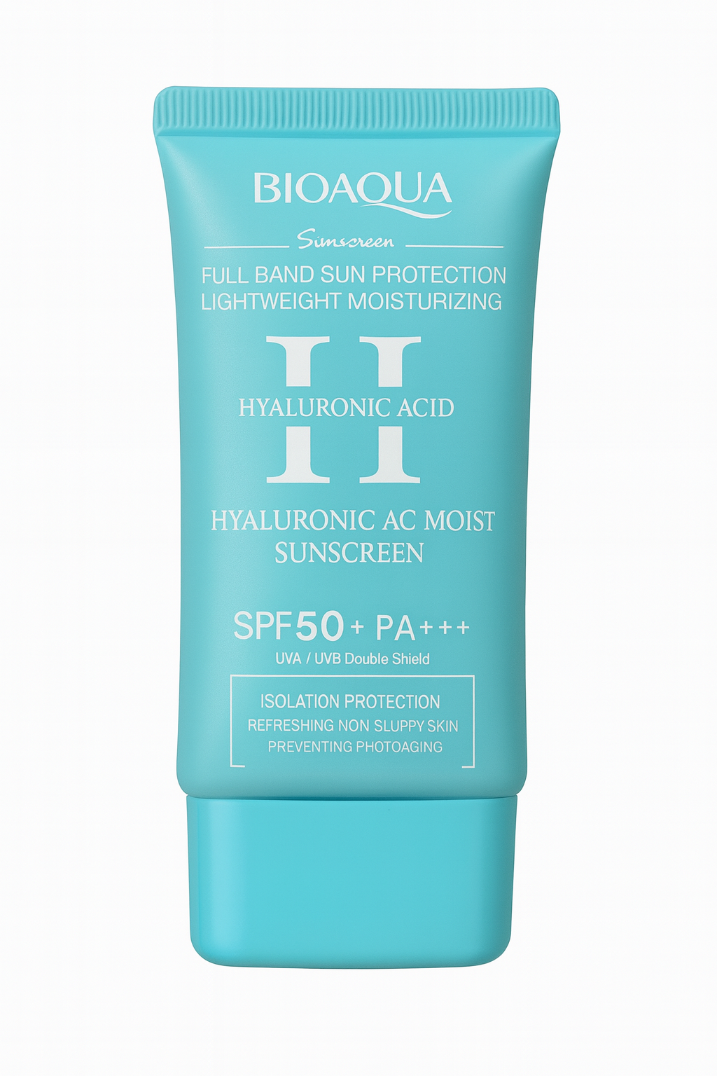 El Protector Solar Hidratante con Ácido Hialurónico BIOAQUA SPF50+ PA+++ ofrece una protección solar de amplio espectro contra los rayos UVA y UVB, ayudando a prevenir el fotoenvejecimiento y el daño causado por el sol. Su fórmula ligera y refrescante crea una película protectora inmediata al aplicarse, sin sensación pegajosa ni obstrucción de la piel, lo que permite disfrutar de actividades al aire libre sin temor a quemaduras solares o bronceado no deseado.