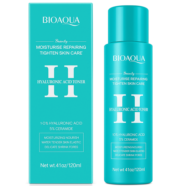 El BIOAQUA Hyaluronic Acid Moisturise Repairing Toner es un tónico avanzado diseñado para restaurar la hidratación natural de la piel, mejorar su elasticidad y reforzar la barrera cutánea. Su fórmula enriquecida con Ácido Hialurónico 10X y Ceramidas 5 % actúa intensamente para suavizar, calmar y reponer la humedad perdida, dejando la piel más flexible, fresca y con apariencia saludable.